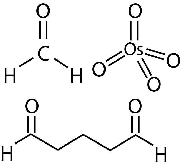 Structural Formulars of Formaldehyde, Glutaraldehyde and Osmium Tetroxide.