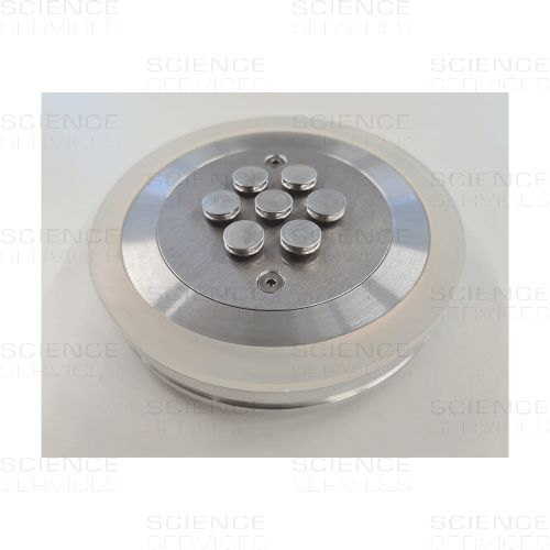 LUXOR Standard Sample Holder: The LUXOR standard sample holder comes as a standard accessory with every LUXORAu and LUXORPt sputter coater. It is designed to hold up to 7 pin stubs (Ø 12.5 mm) or 3 pin stubs (Ø 25 mm) at the same time. Its user-friendly design features an easily accessible preparation surface and is supported by three elastomer feet for maximum stability. Once your samples are in place, there’s no need to reposition them—making it the perfect choice for reliable and efficient sample preparation. All pin stubs are securely fastened, ensuring they stay in place during the coating process.