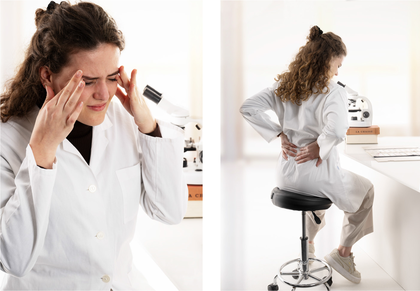 Especially in laboratory environments, static sitting, repetitive movements, and non-ergonomic postures are often unavoidable. It is therefore crucial to address these issues with a solution-oriented approach.